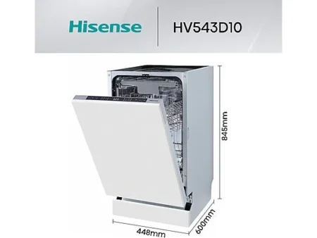Lavavajillas integrable – Hisense HV543D10, 11 servicios, 7 programas, 44.8 cm, Tercera bandeja, Inverter, Sin Panelar 459.00 €
