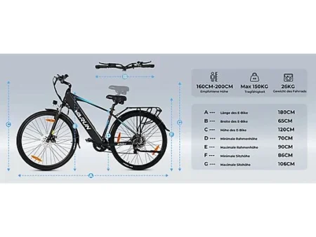 Bicicleta urbana – VARUN S700-1, Bicicleta eléctrica, 250W, negro 795.00 €