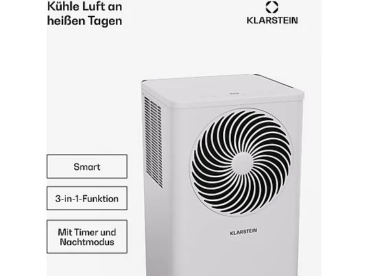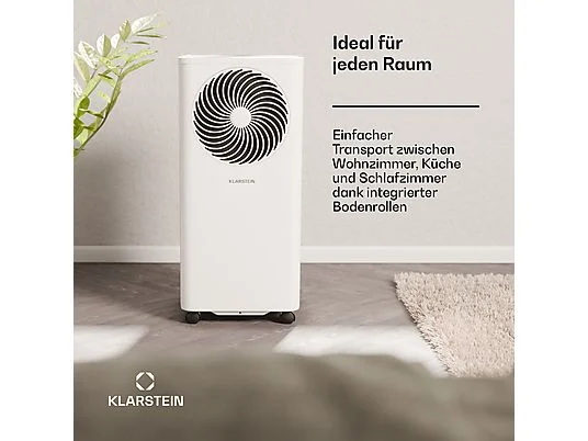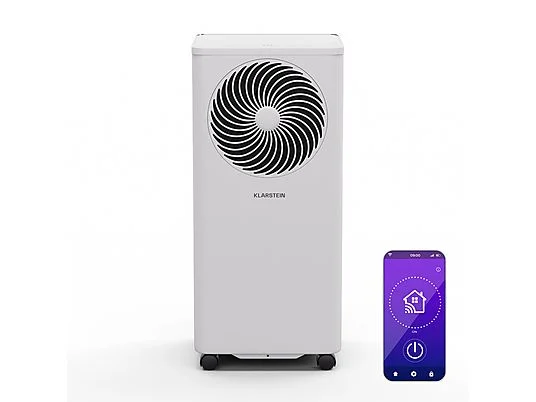 Sin embargo, el aire acondicionado de Klarstein no solo sirve para enfriar rápidamente el aire. Con tres modos potentes, también puede usarse como deshumidificador y ventilador. Su manejo es cómodo mediante mando a distancia, intuitivo a través del panel táctil o inteligente a través de la aplicación. Otro punto destacado es el control por voz mediante Alexa o el Asistente de Google. Con una sola palabra puedes disfrutar de una corriente de aire fresco.
