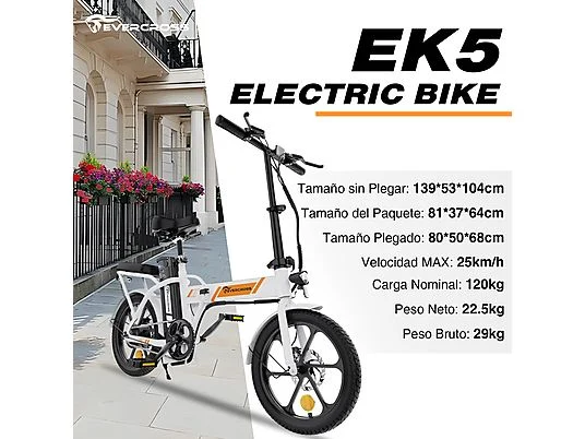 La bicicleta eléctrica EVERCROSS EK5 está equipada con un motor de 250 W y 36 V, capaz de superar pendientes de hasta 25° sin esfuerzo. La batería de iones de litio integrada y extraíble de 8,4 Ah permite, según el modo de conducción, una autonomía impresionante de hasta 25–45 km.