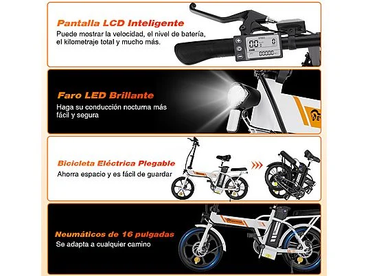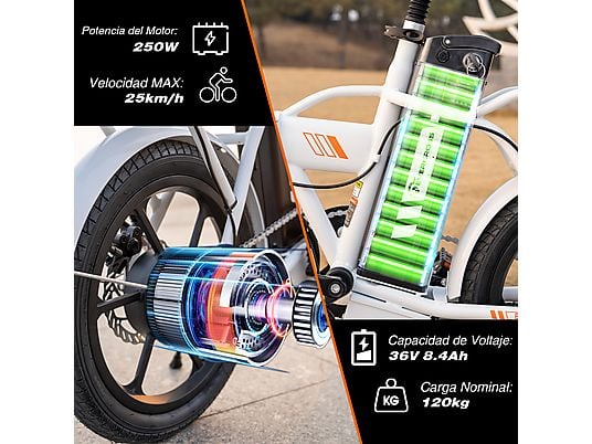 Bicicleta de ciudad - EVERCROSS TECH EK5 E-Bike,equipada con batería extraíble de 36V 8.4AH Bicicleta plegable, Bicicleta eléctrica, 250W, Blanco