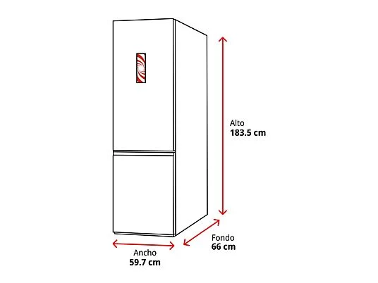 Control electrónico de temperatura, Luz LED interior, Estantes de vidrio templado, Cajón para verduras grande, Zona fresca, Cajones de cristal para congelador, Puerta reversible