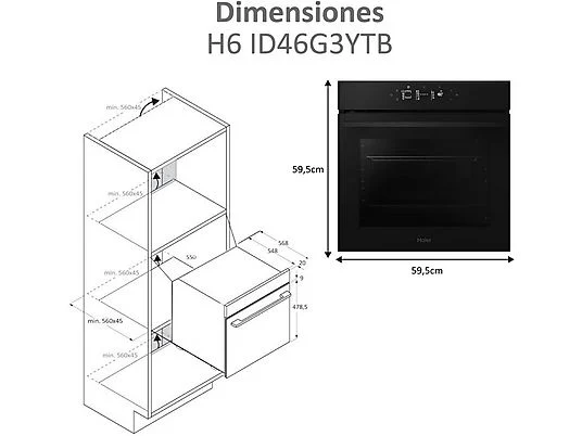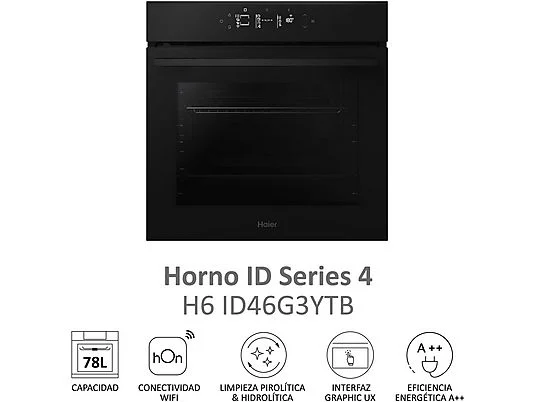• Horno - Haier H6 ID46G3YTB ID Series 4, Multifunción, Sistema de limpieza integrado, 78 l, 59.5 cm, Negro