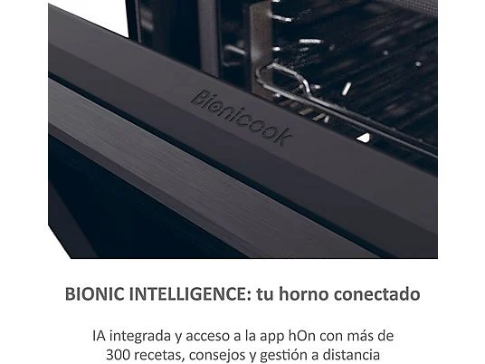 Gracias a la conexión Wi-Fi y Bluetooth, puedes controlar tu horno a distancia, iniciar cocciones, recibir recomendaciones de recetas o acceder a tutoriales. Además, puedes utilizar comandos de voz y disfrutar de más de 300 recetas paso a paso directamente desde tu smartphone.