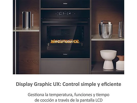 Este horno de 78 litros de la Serie 4 de Haier combina diseño elegante, conectividad avanzada y eficiencia energética A++. Gracias a su interfaz Graphic UX, ofrece un control intuitivo y moderno, ideal para quienes buscan precisión y estilo en su cocina.