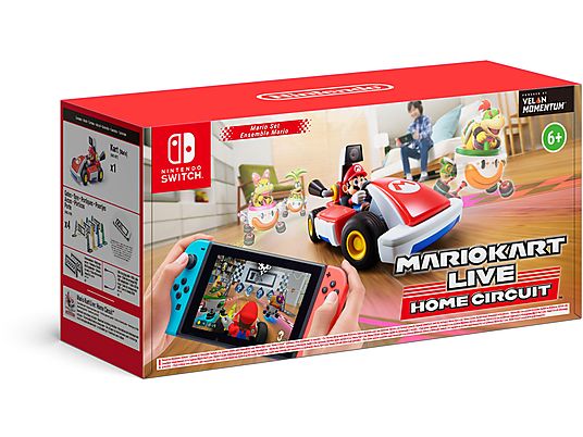 ¡Transforma tu casa en un circuito de carreras con Mario Kart Live: Home Circuit, una nueva manera de disfrutar de Mario Karten Nintendo Switch! Conduce un kart en el mundo real usando los controles de Mario Kart y vive la acción en primera personagracias a la cámara integrada que transmite las imágenes directamente a tu Nintendo Switch o al televisor. Verás tu casa transformarseen las profundidades del océano, en un desierto con dunas… ¡y muchos más escenarios del mundo de Mario Kart!