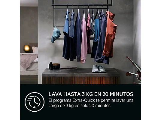 Para esos días ajetreados, el programa Extra-Quick permite que tengas hasta 3 kg de ropa perfectamente limpia en solo 20 minutos.