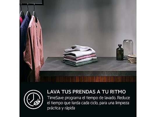 Simplemente selecciona la opción TimeSave para reducir la duración del ciclo hasta dos veces, consiguiendo un lavado eficiente lo más rápido posible.