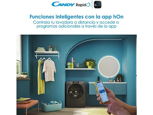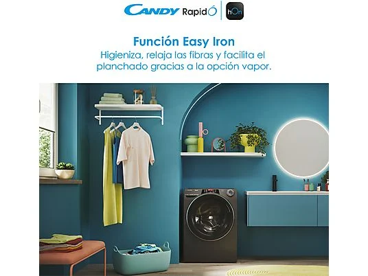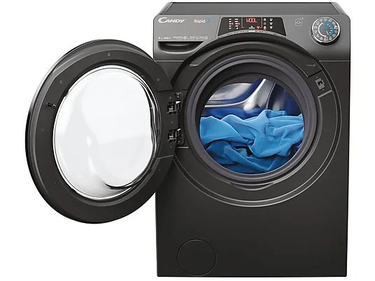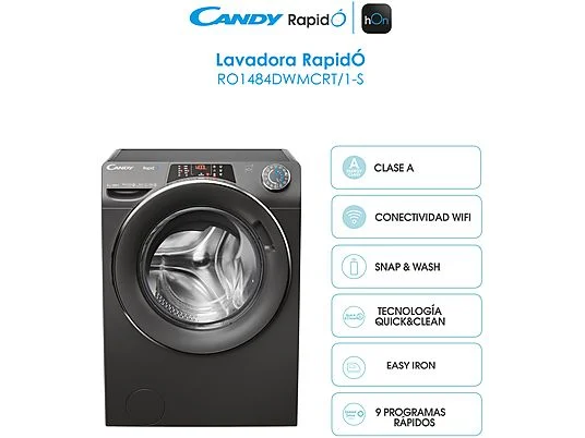 • Lavadora carga frontal - Candy RapidÓ RO1484DWMCRT1-S, 8 kg, 1.400 rpm, Motor Inverter, Wi-Fi, Antracita
