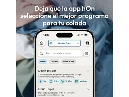 La App hOn de Haier te permitirá elegir y personalizar más de 60 ciclos especializados para cada tipo de tejido, acceder a consejos prácticos sobre el tratamiento de las manchas y consejos sobre el tipo y la cantidad de detergente. Además, podrás elegir cuándo iniciar el ciclo de lavado según las condiciones climáticas, mejorar la eficiencia y rendimiento e incluso recibir notificaciones de fin de ciclo fuera de casa.