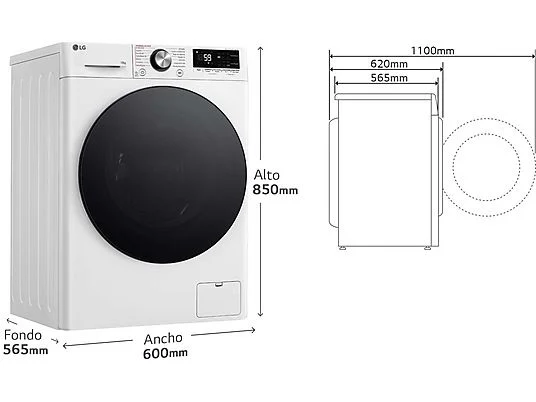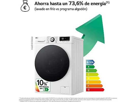 *Probado por la entidad independiente Intertek. Estudio basado en la norma IEC 60456: edición 5.0. Basado en un ciclo Turbowash con una duración de 39 minutos con 5 kg de carga IEC comparado con el ciclo de algodón convencional TurboWash. Los modelos comparados fueron el F4V9RWP2W frente al FC1450S2W. Los resultados reales pueden variar dependiendo de la ropa y el entorno. Para más información, visite (www.lg.com/es).