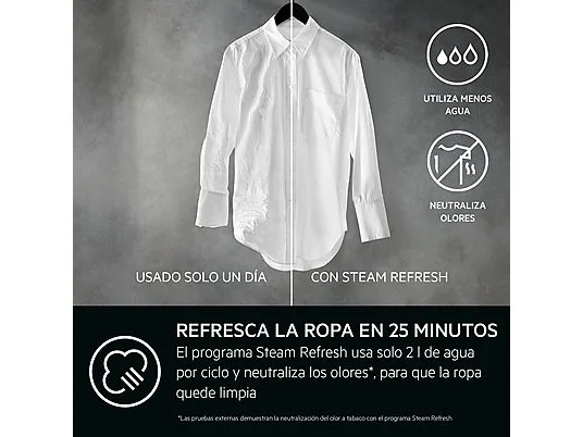 El programa SteamRefresh neutraliza los olores y reduce las arrugas de las prendas, incluso de las más delicadas, y todo en tan solo 25 minutos.
