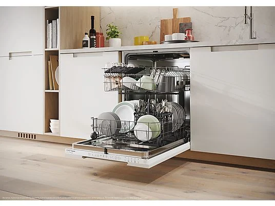 Gracias a su nivel de ruido de solo 47 dB, el lavavajillas es lo suficientemente silencioso como para usarlo en cualquier momento del día, incluso por la noche, sin causar molestias.