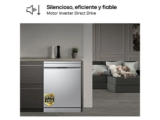 ¹ La garantía de por vida del motor del lavavajillas ofrece una cobertura de 30 años en la pieza: 3 años de garantía legal y 27 años de garantía comercial. Se informa de que el periodo de 30 años excede la vida media útil de los lavavajillas, calculada en 11 años según un estudio realizado por un organismo independiente en el que LGEES no ha participado. Esta garantía únicamente cubre el coste de la pieza, siendo los costes adicionales responsabilidad del cliente. Los términos de esta garantía comercial sobre el motor (salvo el plazo) son los mismos que los del apartado 5 de la tarjeta de garantía de electrodomésticos en https://www.lg.com/es/soporte/condiciones-de-garantia/. Promoción válida por tiempo limitado. Consulte fechas y condiciones en las bases legales recogidas en www.tuserviciolg.com/promociones/garantiadeporvida