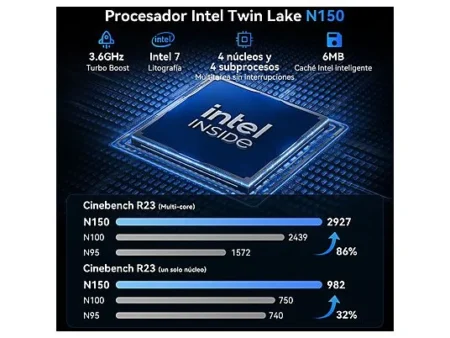 Equipado con el procesador Intel® Core™ i7-13620H de 13.ª generación, este Mini PC ofrece un rendimiento de alto nivel con 10 núcleos, 16 hilos y frecuencia turbo de hasta 4,9 GHz. Con una caché de 24 MB y una potencia máxima de 115 W, está preparado para tareas exigentes con una eficiencia sorprendente.