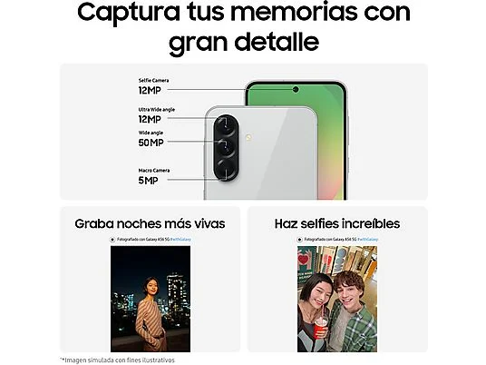 Con el procesador Exynos 1580 de 4nm, Galaxy A56 5G mejora su potencia con un 18% más en CPU y un 17% en GPU respecto a su antecesor. Su sistema de refrigeración avanzado evita sobrecalentamientos, y su almacenamiento de hasta 256 GB te da espacio de sobra para tus recuerdos favoritos y aplicaciones necesarias.