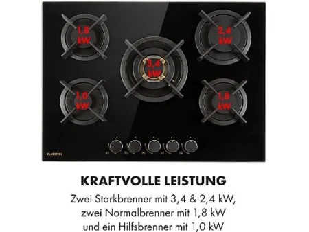 La placa de gas combinada MultiChef 4 de Klarstein es la fusión ideal de 2 placas de gas y 2 placas de vitrocerámica para crear un verdadero multitalento. Con un total de 6,4 kW de potencia, 2 tamaños de quemador diferentes y 2 parrillas de hierro fundido, está perfectamente equipada para preparar cualquier comida imaginable. Las llamas se ajustan fácilmente en cualquier momento mediante las perillas giratorias de accionamiento suave. La superficie de vidrio cerámico templado no solo presenta un aspecto elegante, sino que también es maravillosamente fácil de limpiar. Además, el sistema de encendido eléctrico con protección contra fallos de la llama garantiza un manejo seguro.