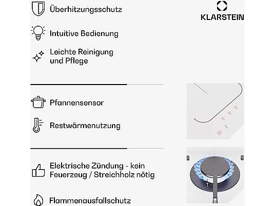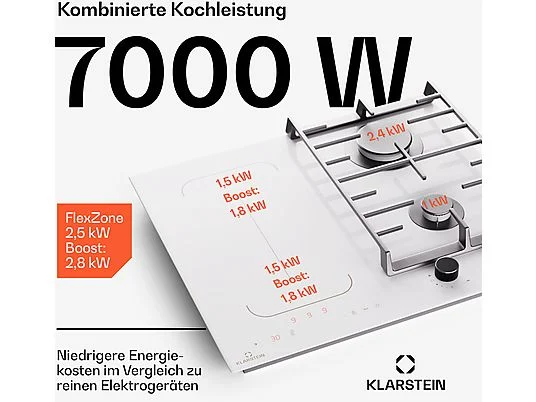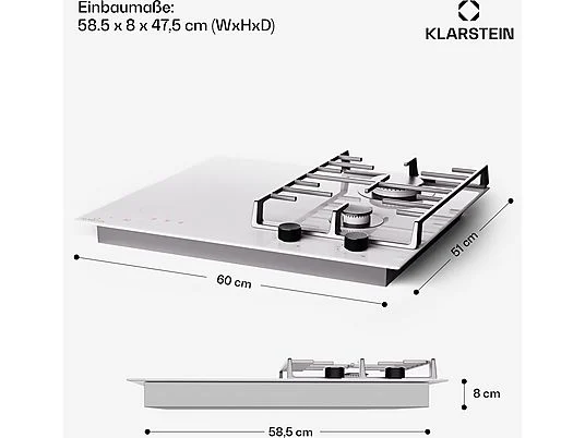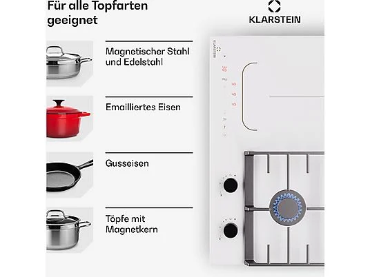 Placa de gas – KLARSTEIN MultiChef inducción, 4 zonas, 60 cm, Blanco