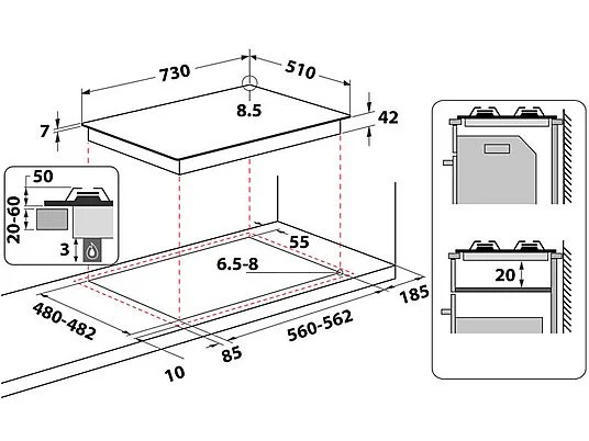 Placa de gas - WHIRLPOOL 869991632540, 5.0000 zonas, 73,00 cm, Acero