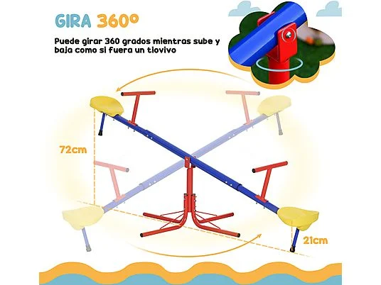 Este pack de Outsunny incluye un columpio doble y un sube y baja. Ambos juegos, diseñados para niños a partir de 3 años, ofrecen diversión segura al aire libre, promoviendo habilidades como el equilibrio y la coordinación. El columpio es ajustable en altura y el sube y baja añade la emoción de un giro de 360 grados.