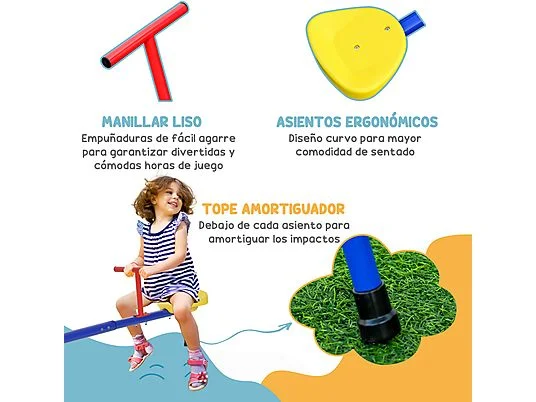 - El sube y baja tiene asientos con topes debajo para amortiguar el impacto de los golpes de los asientos cuando tocan el suelo