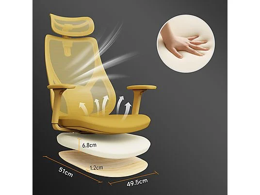 La silla está equipada con reposabrazos 3D que alivian los hombros y las muñecas durante largas horas frente al ordenador. Un soporte estable para los brazos facilita el mantenimiento de una postura correcta y reduce la tensión muscular.