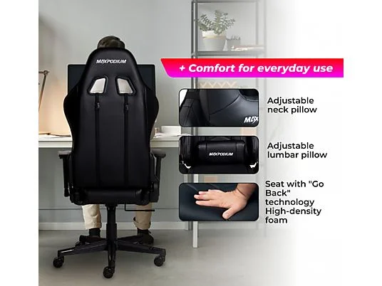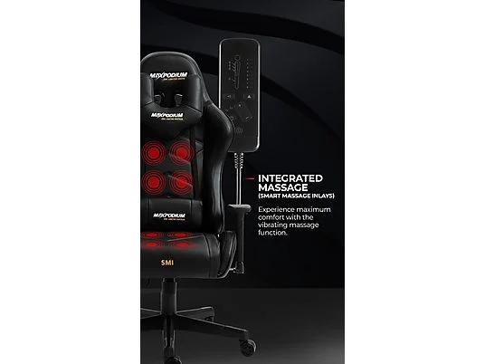 Experimente la máxima comodidad con la silla gaming MaxPodium Tactical SMI de edición limitada, que combina estilo, ergonomía y tecnología. Perfecta para jugar, trabajar desde casa y estudiar, esta silla cuenta con una función de masaje integrada para aliviar la tensión en la espalda y la zona lumbar.