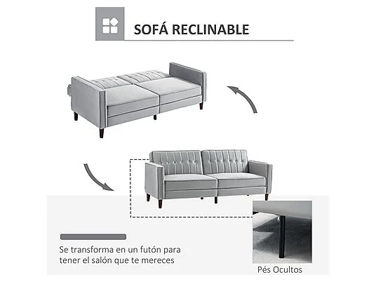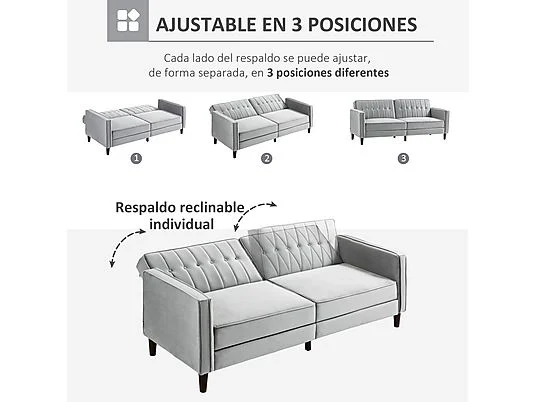 Sofá Cama – HOMCOM 839-076V03LG, Gris