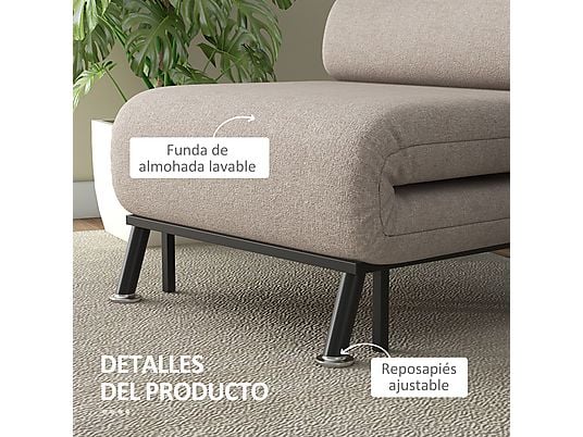 HOMCOM Sofá Cama de 1 Plaza 3 en 1 Sofá Cama Plegable Tapizado en Lino con Respaldo Ajustable de 5 Niveles y Almohada Acolchada para Oficina Dormitorio Salón 75x70x75 cm Beige |