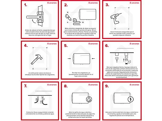 MAYOR FUNCIONALIDAD Y RENDIMIENTO A LARGO PLAZO CON EL TERMO INTELIGENTE BLU1 ECO H El termo eléctrico de Ariston Blu1 ECO H es inteligente, por lo que memoriza tus hábitos de consumo proporcionándote un mayor ahorro en tu factura de la luz. Con su tecnología Waterplus tendrás un 16% más de agua caliente respecto a otros termos del mercado sin esta tecnología. Gracias a su esmaltado de titanio y a sus componentes de gran calidad estará contigo mucho tiempo. Características destacadas • TECNOLOGÍA INTELIGENTE ECO-EVO QUE CONOCE TUS HÁBITOS: Con la función ECO-EVO el calentador aprende y memoriza tus hábitos de consumo y regula su funcionamiento para ayudarte a optimizar tus consumos. • MAYOR AHORRO DE ENERGÍA CON LA TECNOLOGÍA WATERPLUS: tendrás un 16% más de agua caliente respecto a otros termos del mercado que no tienen esta tecnología, ¡y sin gastar más energía! Gracias a la función WaterPlus el agua fría tarda más tiempo en mezclarse con el agua caliente, obteniendo agua caliente durante más tiempo. • PANTALLA INTUITIVA Y FUNCIÓN SHOWER READY: El producto incorpora un amplio Display (pantalla) LCD situado en la parte frontal del termo, muy sencillo e intuitivo, que muestra la temperatura y permite programar múltiples funciones. Por otro lado, la función Shower Ready te avisa a través de la pantalla, para que sepas que el agua para la primera ducha ya está disponible. • CON TECNOLOGÍA T-MAX INTELIGENTE: El termo garantiza disponer de agua caliente en poco tiempo para cubrir las necesidades urgentes, gracias a la gran capacidad de adaptación de este termo que funciona a la máxima temperatura del agua durante más tiempo de manera más eficiente. • MAYOR EFICIENCIA CON EL AISLAMIENTO CYCLOPENTANO: El termo eléctrico, gracias al aislamiento de cyclopentano, limita la pérdida de calor y mantiene la temperatura del agua durante más tiempo de manera más eficiente. • DEPÓSITO/CALDERÍN CON TITANIO: el esmaltado del depósito es de titanio, hecho que protege al termo de la corrosión y de la cal, alargando la vida útil de tu termo. • FUNCIONALIDAD Y ESTÉTICA: CONEXIONES HIDRÁULICAS OCULTAS: El termo cuenta con conexiones hidráulicas ocultas que mejoran la estética del producto, facilitando la instalación en cualquier espacio. • COMPATIBLE CON NUESTRO SOPORTE INSTAFIX: Instafix es nuestro soporte universal para termos que facilita la sustitución de termos sin volver a perforar la pared de tu baño. ¡Cuelga el termo en la pared sin hacer nuevos agujeros! Instafix es compatible con la mayoría de los termos eléctricos del mercado • GARANTÍA COMERCIAL: 3 años de garantía total. 1 de los 3 años de la garantía total lo puedes adquirir registrando el producto en la web del servicio técnico oficial de Ariston. • TAMAÑO DE TERMO RECOMENDADO PARA: o 80L: 2 adultos y 1 niño, para zonas de costa/templada y zonas de interior/montaña o 100L: 2 adultos y 2 niños para zona de costa/templada • MEDIDAS (largo x ancho x alto): o 80L: 75,8x47x45 o 100L: 91,3x47x45 • DE FÁCIL INSTALACIÓN: En posición horizontal • DE GRAN EFICIENCIA ENERGÉTICA: clase energética B.