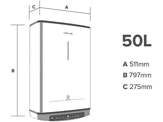 Termo Eléctrico – VELIS PRO WIFI 50 ES EU + INSTAFIX ARISTON, 50 l, Blanco